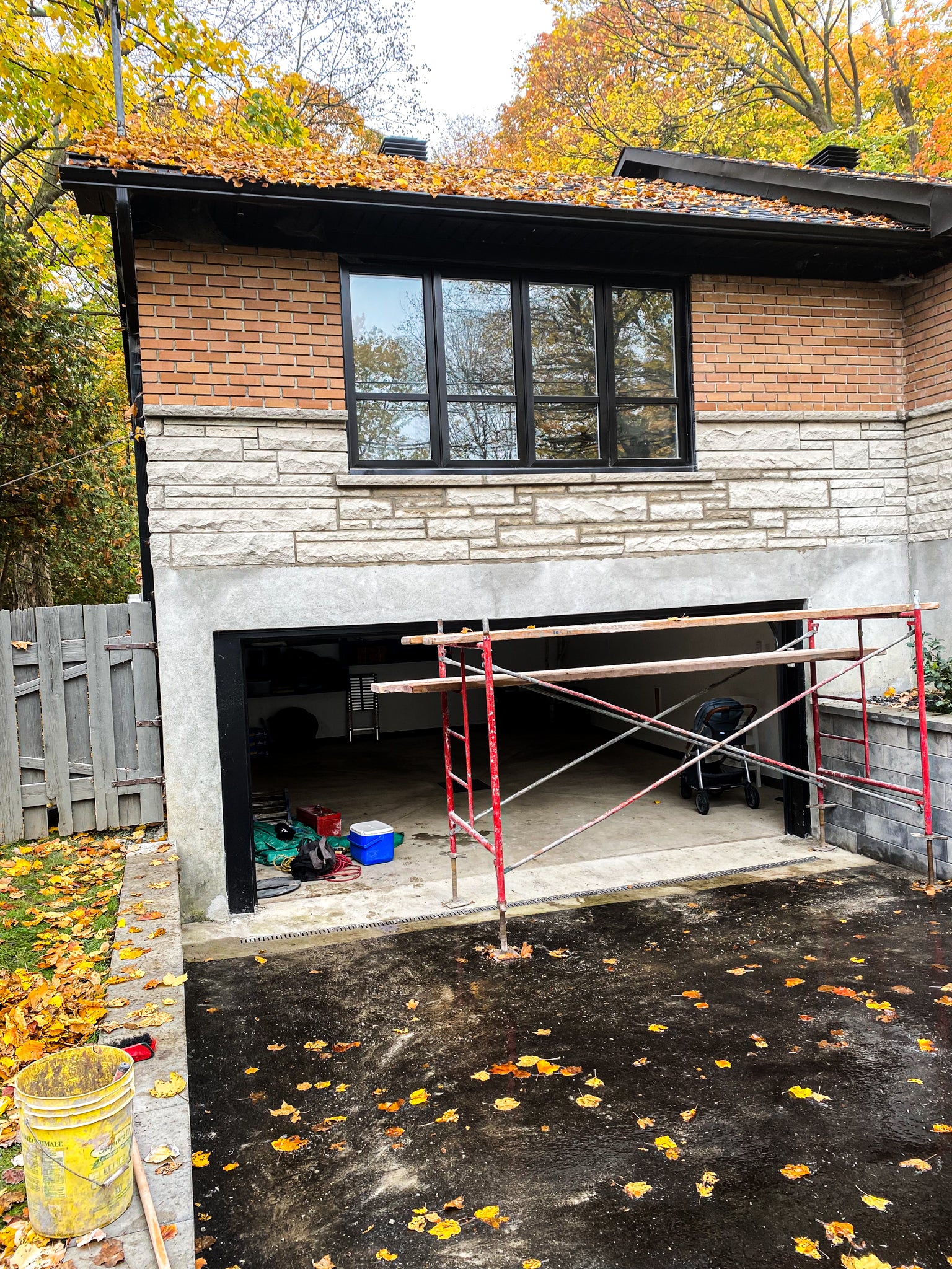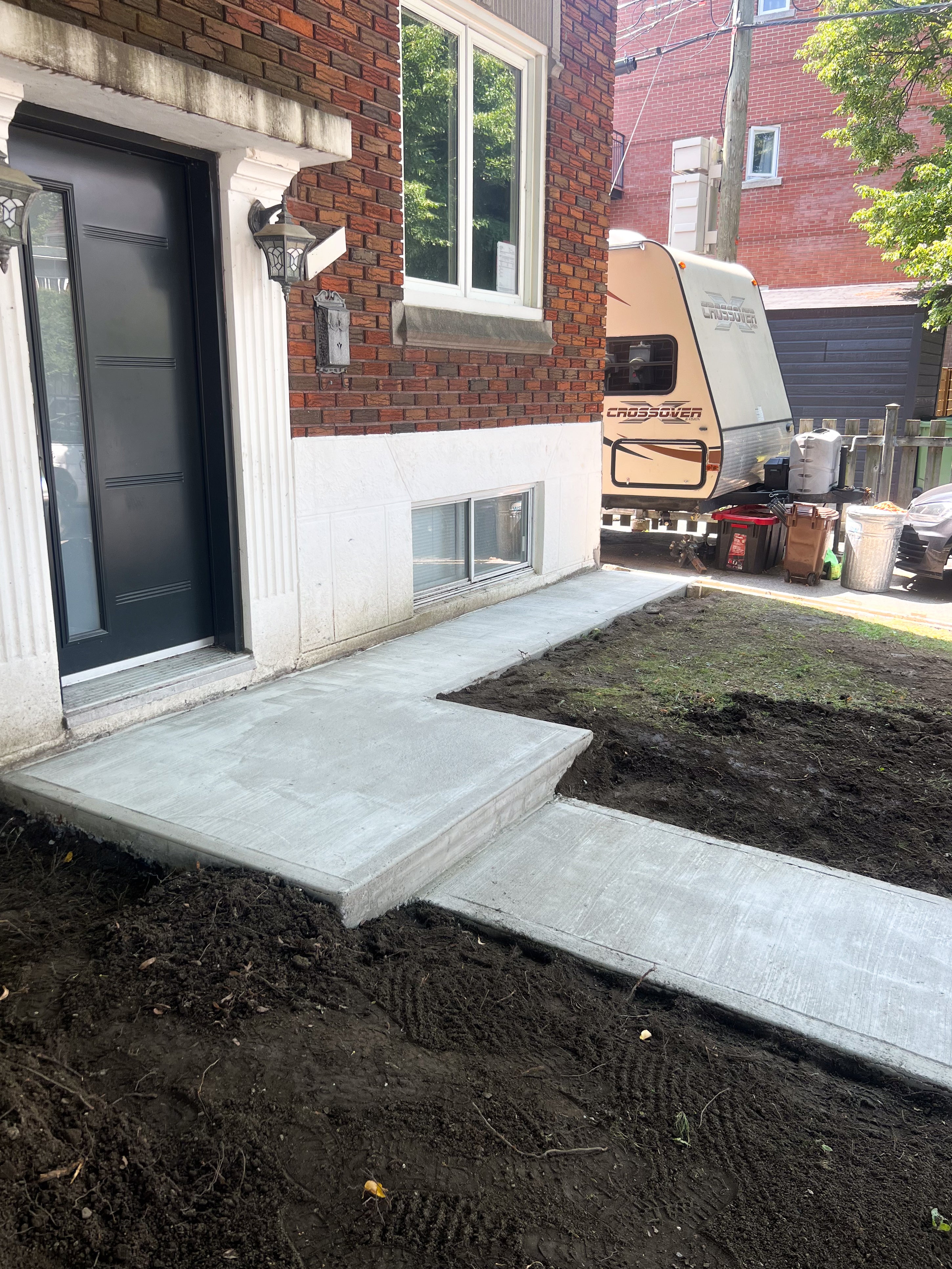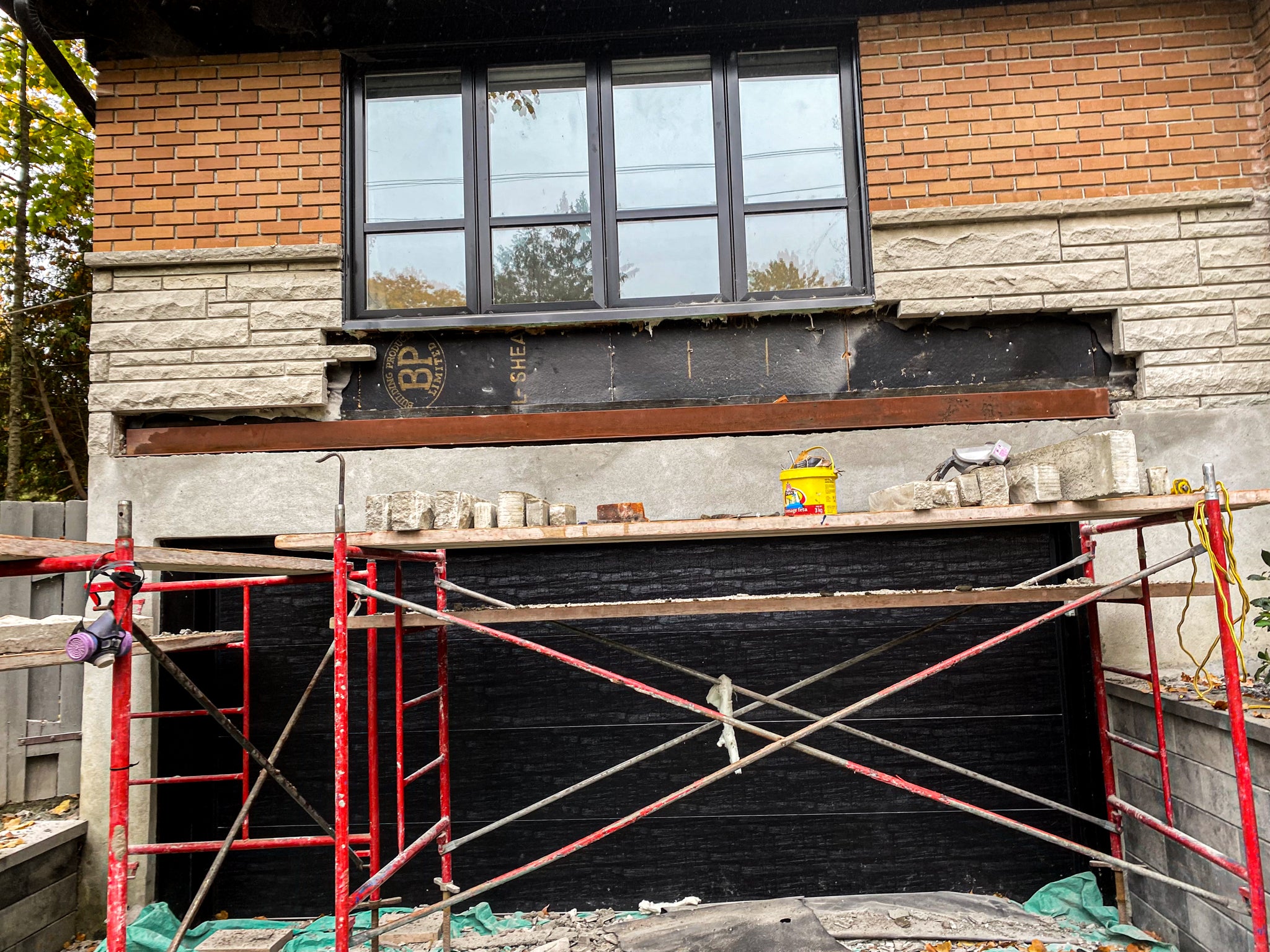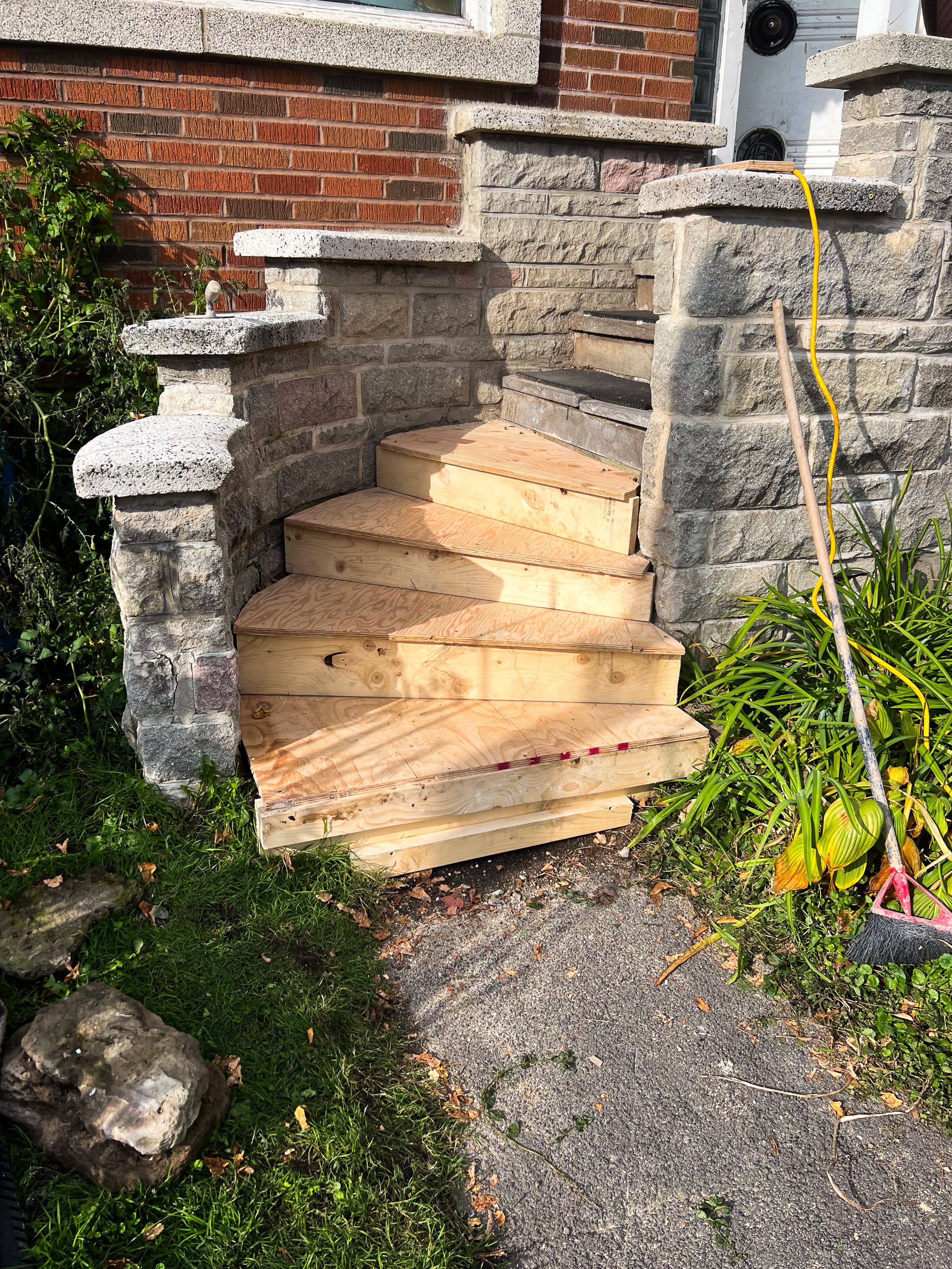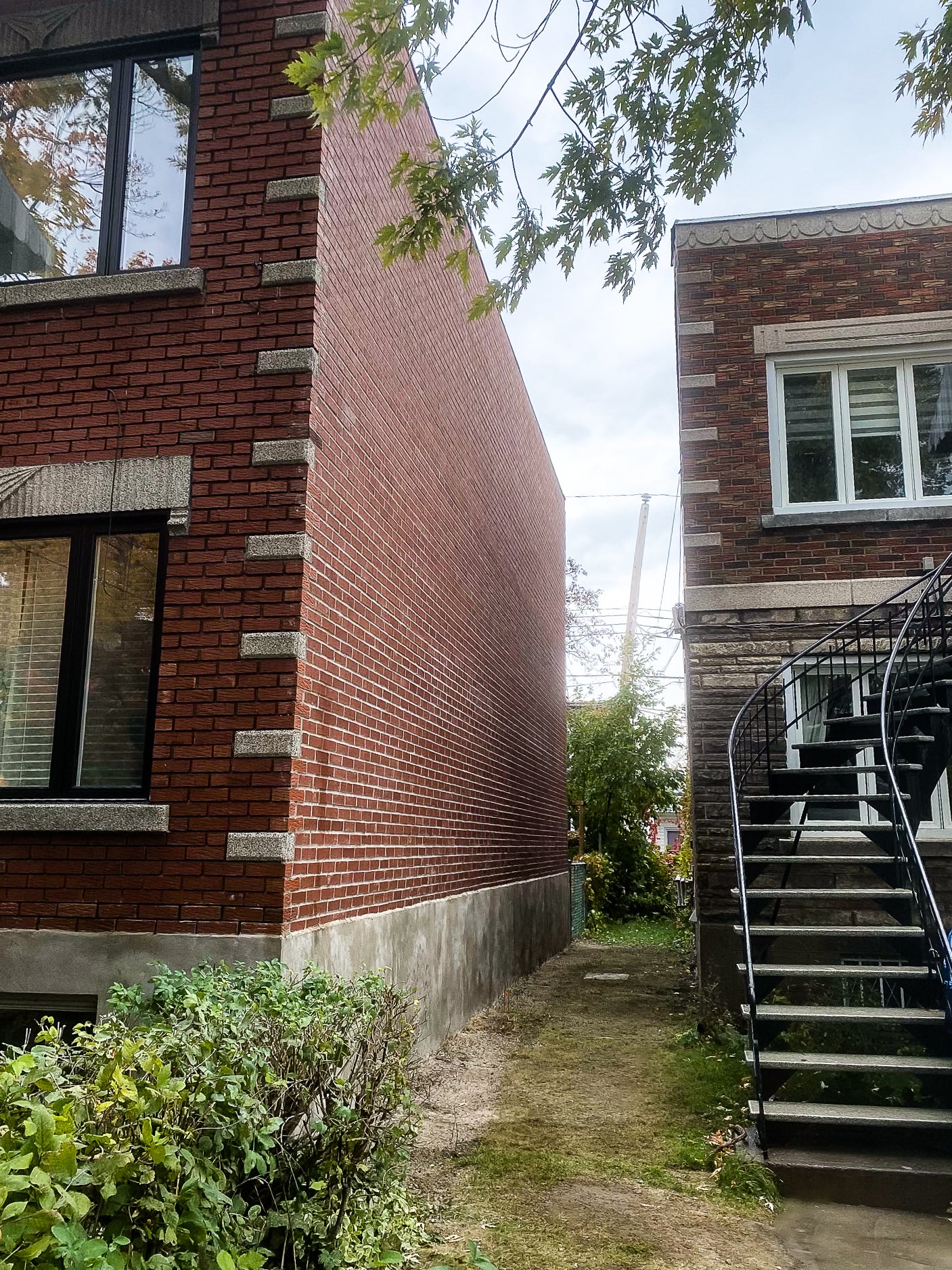 Avant les travaux de maçonnerie, le muret en pierre présentait une érosion importante et commençait à perdre sa stabilité. Les marches en béton extérieures, abîmées par les hivers rigoureux de Montréal, s’effritaient peu à peu et se dégradaient