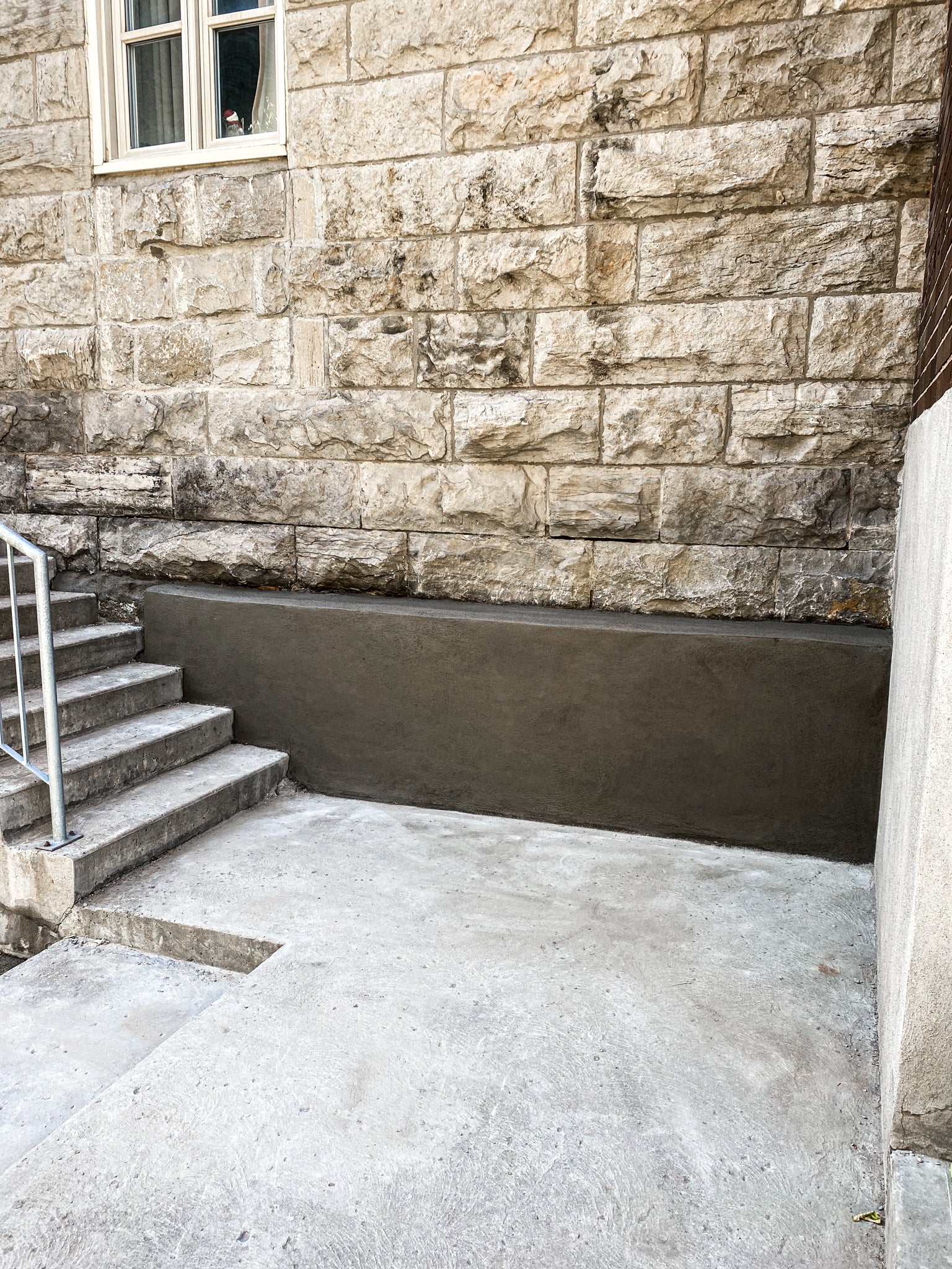 Nos maçons qualifiés ont reconstruit l’escalier en béton et restauré les murs en pierre adjacents afin d’offrir une finition solide, durable et esthétique.