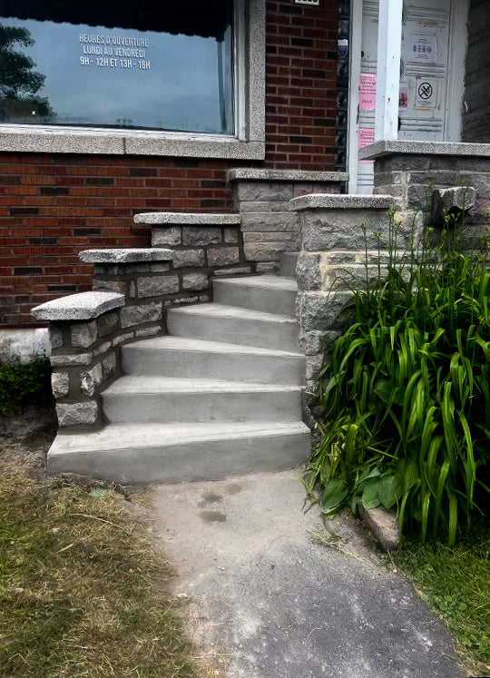 Reconstruction d’escalier en béton et restauration de muret en pierre à Montréal
